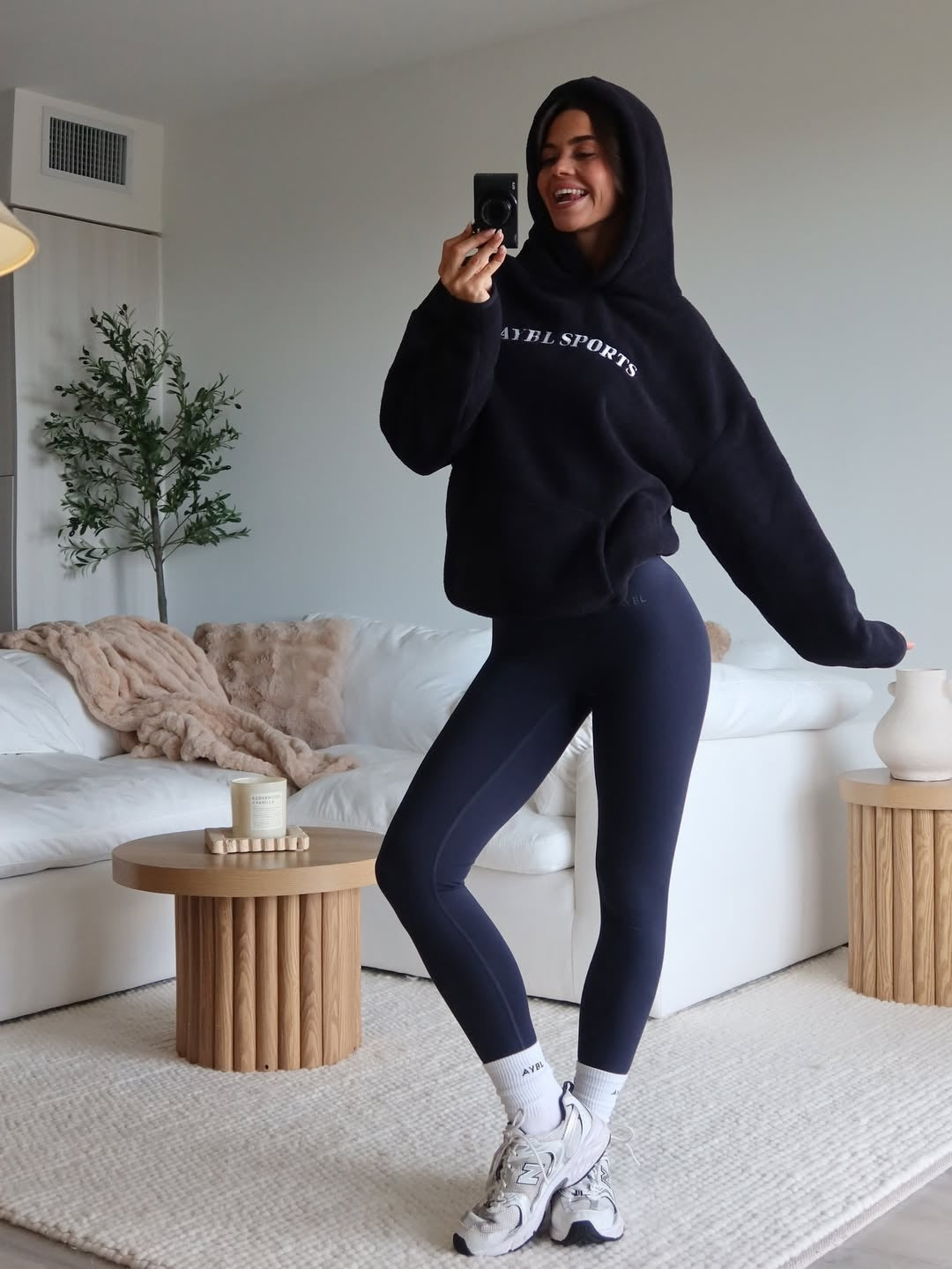Ontworpen voor beweging. Hoge taille, zachte stof en contrastafwerking.